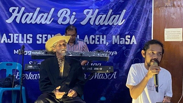 Acara Halal bi Halal Majelis Seniman Aceh ini berlangsung di warkop Taman Budaya Banda Aceh, Minggu (28/04/2024).