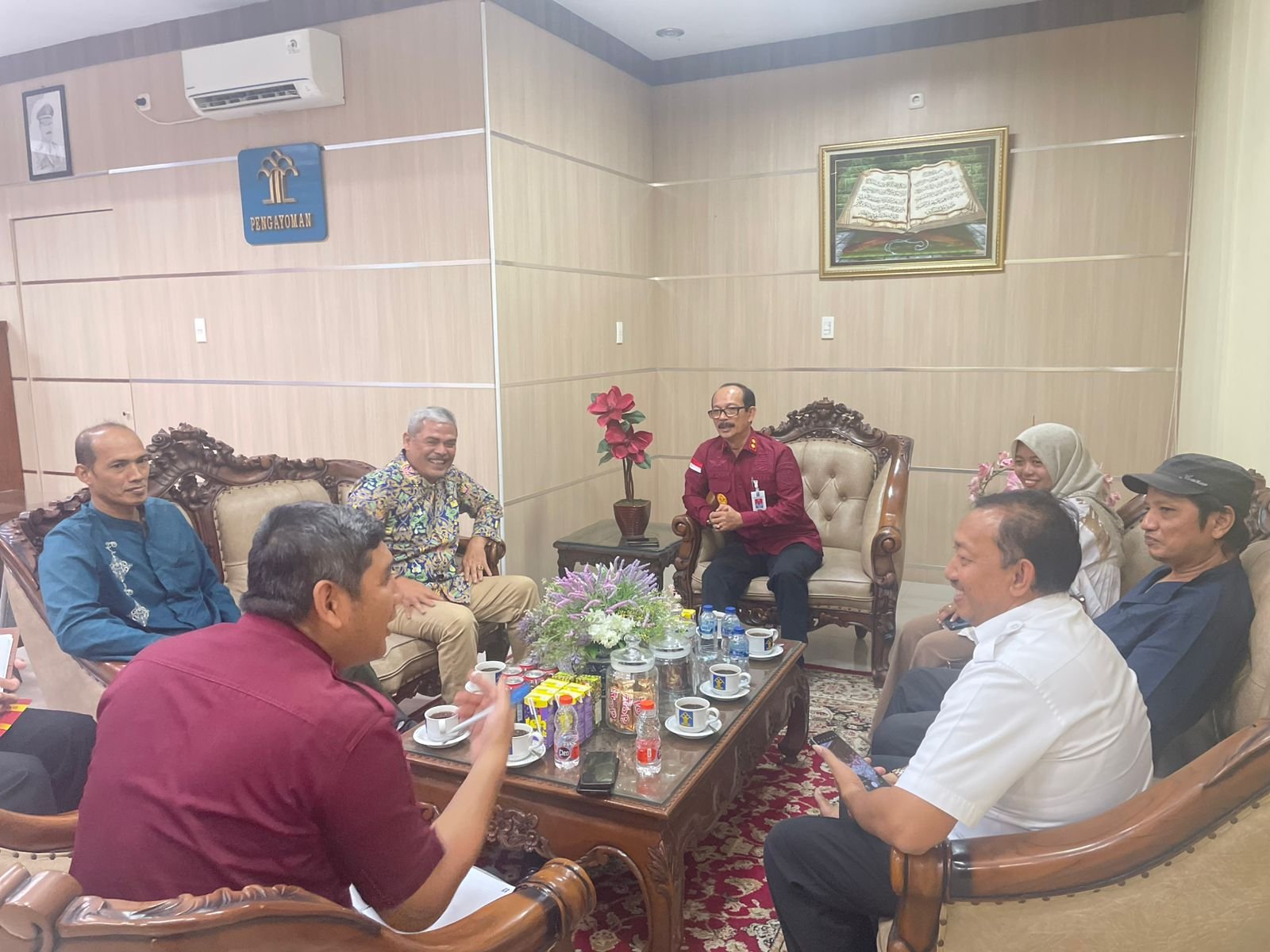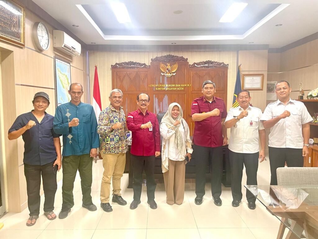 BANDA ACEH – Majelis Seniman Aceh (MaSA) beraudiensi dengan Kemenkumhan Aceh yang disambut hangat oleh Kepala Kantor Wilayah (Kakanwil) Kementerian Hukum dan Hak Asasi Manusia (Kemenkumham) Wilayah Aceh, Meurah Budiman, dan anggotanya, di ruang kerjanya, Banda Aceh, Rabu, 23 Oktober 2024.